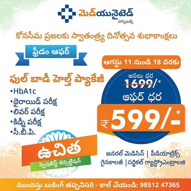 Amalapuram’s healthcare sector is marking Independence Week with a practical and impactful move. Medunited Hospital has launched its Freedom from…